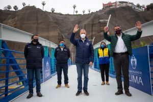 El alcalde de Lima, Jorge Muñoz, entregó un nuevo puente peatonal inclusivo, ubicado en el distrito de Barranco, cerca de la playa Las Cascadas. La estructura, que contó con una inversión de casi S/4 millones, brindará un acceso adecuado a los más de 149 mil visitantes del circuito de playas de la Costa Verde.