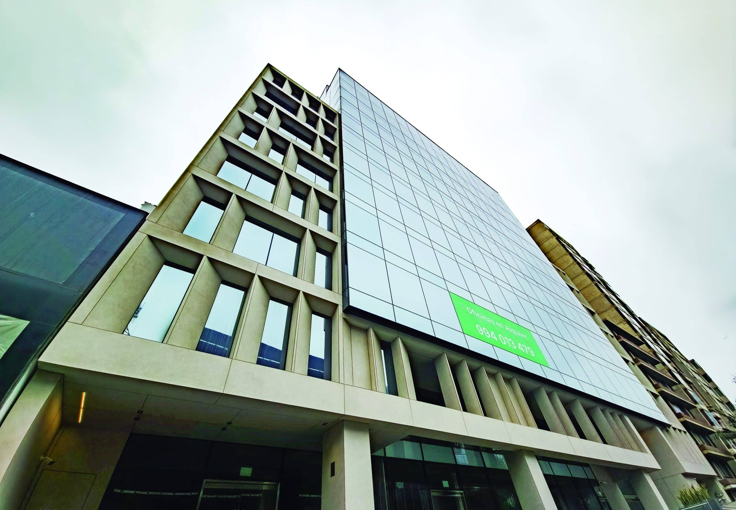La edificación se presenta como una torre de 14 pisos de oficinas con áreas que van desde 250 m² hasta 1,000 m², ofreciendo espacios flexibles y modernos que se adaptan a las necesidades de empresas de distintos tamaños. Algunos ambientes corporativos cuentan con terrazas privadas, lo que le añade valor y exclusividad al establecimiento.