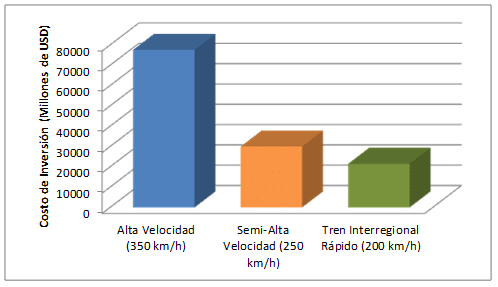 Costos 50–60% menores en Semi-Alta Velocidad, entre US$ 25 y 35 mil millones.